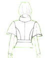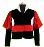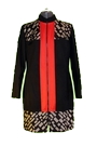 Aus dem Synthetischen Material ist das Wasserfall-Kleid. Das weisse Schmetterlings-Kleid ist und besteht aus Naturfaser, (Maulbeerseide) ist edel, glänzend und ist sehr fein im Griff. Der Mantel ist von zwei verschiedenen Materialien, schwarz und rot sind Seidenstoffe, (Naturfasern) der schwarz mit weissem Muster ist ein Synthetischer Stoff und gibt eine schöne lebendige Kombination. Die Jupe im schwarz-weiss und einen feinen roten Streifen sind aus Synthetischen Stoffe und ein Teil besteht aus Elastan. Die Jacke und das Jupe sind vom gleichen Stoff hergestellt. Der Seidenstoff ist rot und der schwarze Stoff ist Synthetisch. Meine Aspiration ergeben eine ausgezeichnete Wirkung und Formen, durch die lebendigen Farben vom Tukan und Schmetterlinge und ein erfrischender Wasserfall.